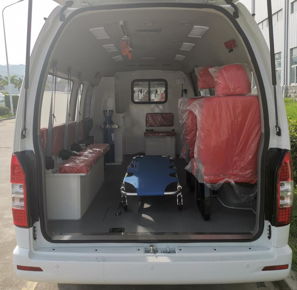 The King Long Kaige ambulance retains the standard functions of the driver’s cabin from the base model. The entire passenger compartment has been replaced with a dedicated mobile emergency station, incorporating medical cabin facilities, a stretcher system, a multi-functional power supply system, and other comprehensive emergency medical equipment to ensure the necessary tools are available during transport and to guarantee the basic life-saving measures needed by patients.