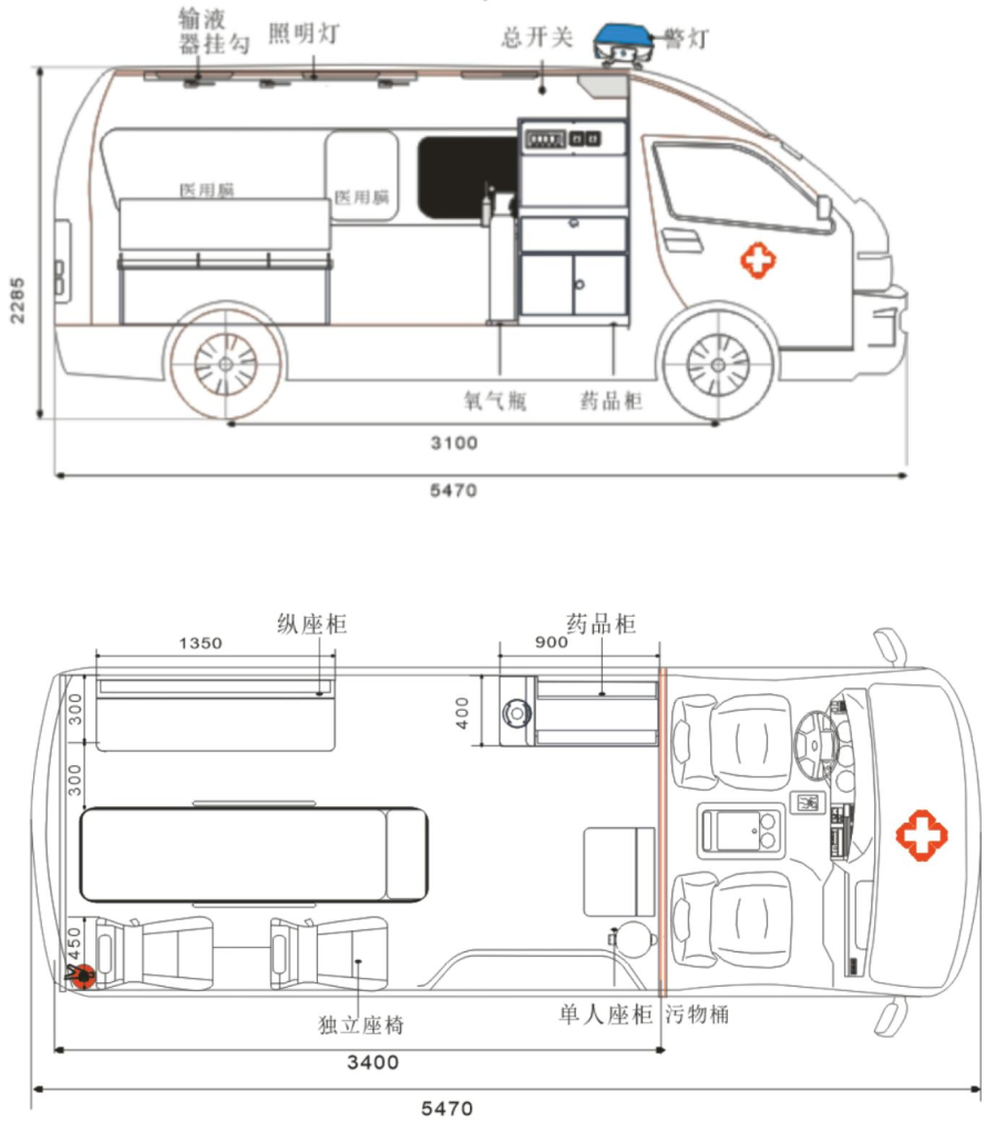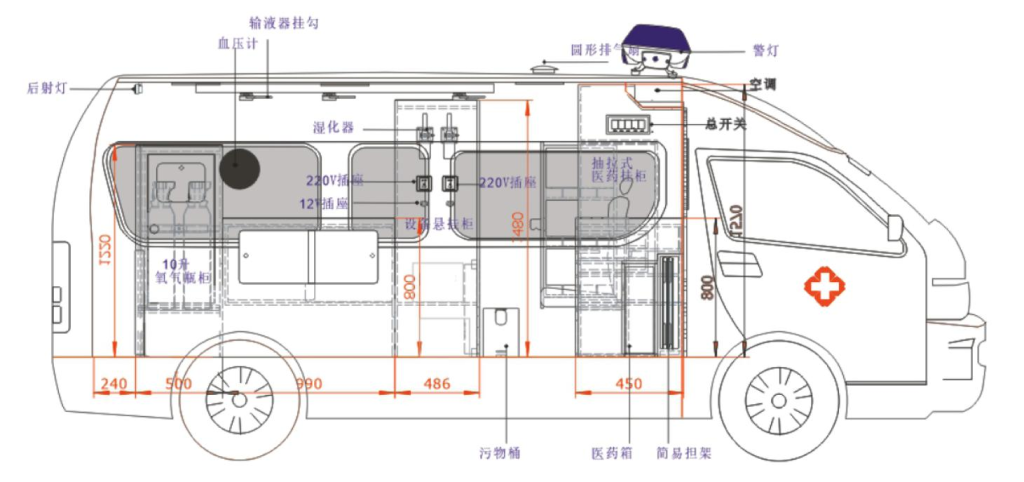 Layout diagram of transport ambulance