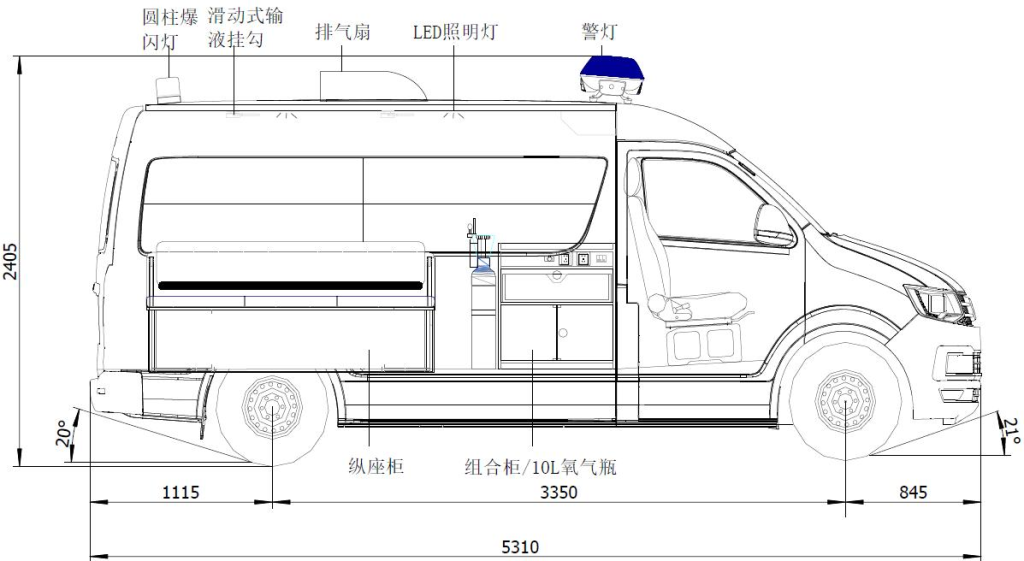 The King Long Kai Rui ambulance retains the standard functions of the driver’s cab of the base King Long Kai Rui vehicle. The entire original passenger cabin has been replaced with a dedicated mobile emergency station, incorporating comprehensive medical facilities such as a medical cabin, stretcher system, and multi-functional power supply system. This ensures that the necessary medical tools are available during the ambulance journey, guaranteeing the basic life support that patients urgently need during transport.